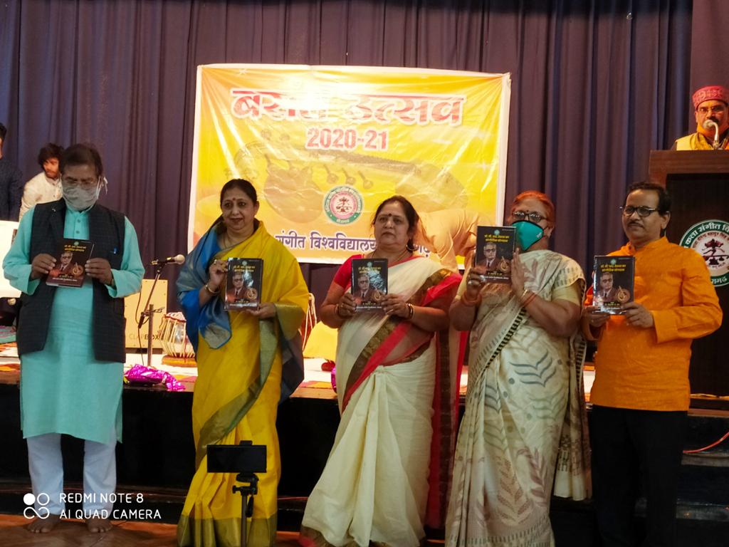 इंदिरा कला संगीत विश्वविद्यालय के उपकुलपति पद्मश्री डॉ. मोक्षदा (ममता) चन्द्राकर जी के कर कमलों द्वारा मेरी पुस्तक ‘प्रो. बी.आर. देवधर का सांगीतिक योगदान’ का लोकार्पण (2020-21
